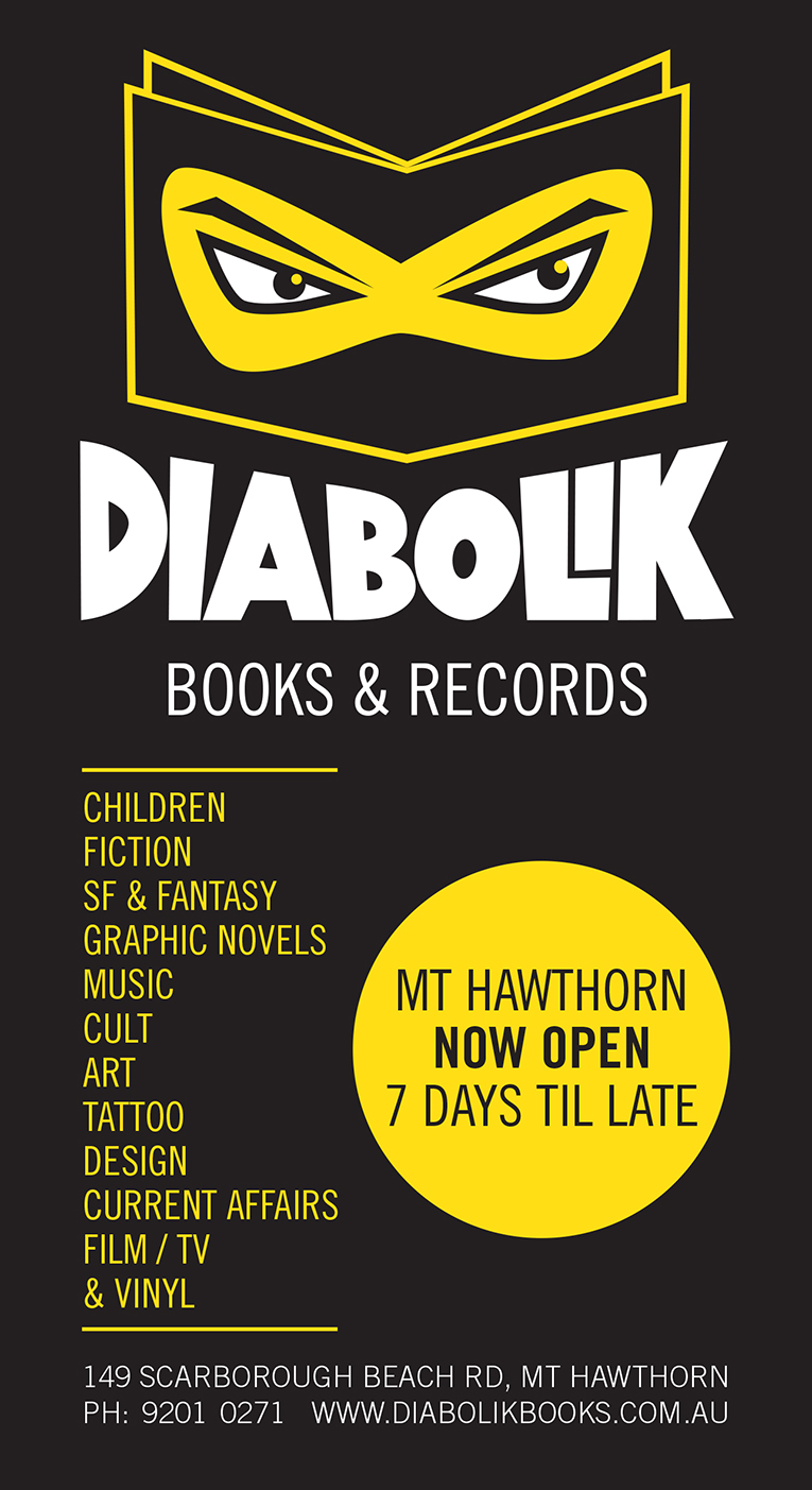 Diabolik Books and Records is a haven for music and book lovers in Mt Hawthorn. Along with a large vinyl music section, Diabolik has a very cool range of books covering film, fashion, fiction, non-fiction, music, art and design, as well as graphic novels and cookbooks.