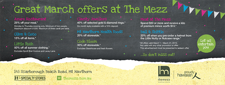 Come and enjoy all of the fun and entertainment, food and frivolity from 11am to 2pm at The Mezz, Mt Hawthorn.
