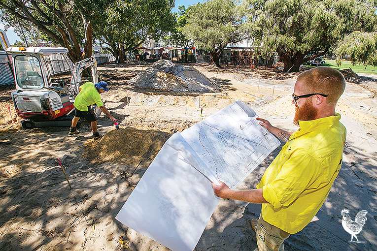WORKS have kicked off at Braithwaite Park to bring a nature playground to Mount Hawthorn. Nature playgrounds are intended to let kids play creatively and expose them to a wee bit of risk and scraped knees so they can learn some resilience. This one’ll have a flying fox, log-steppers, climbing net, water trough, a tunnel, a slide down an embankment, and a teepee, and it’s aimed at older kids 10-14 since tiny youngsters are already well catered for around town.