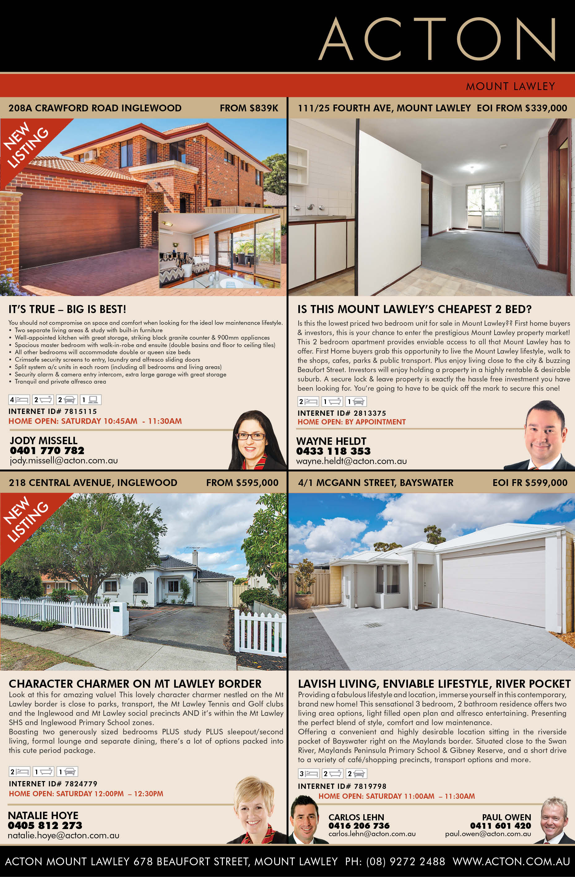 Advertisement: See all the latest properties for sale from Acton Mount Lawley below