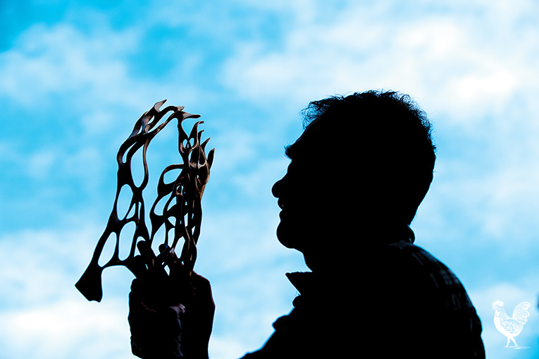 The “vase” is an elaborately carved tangle of twists and turns representing fire, and is the result of countless hours of intricate carving, and slow, careful polishing to achieve a soft finish to the hard timber.