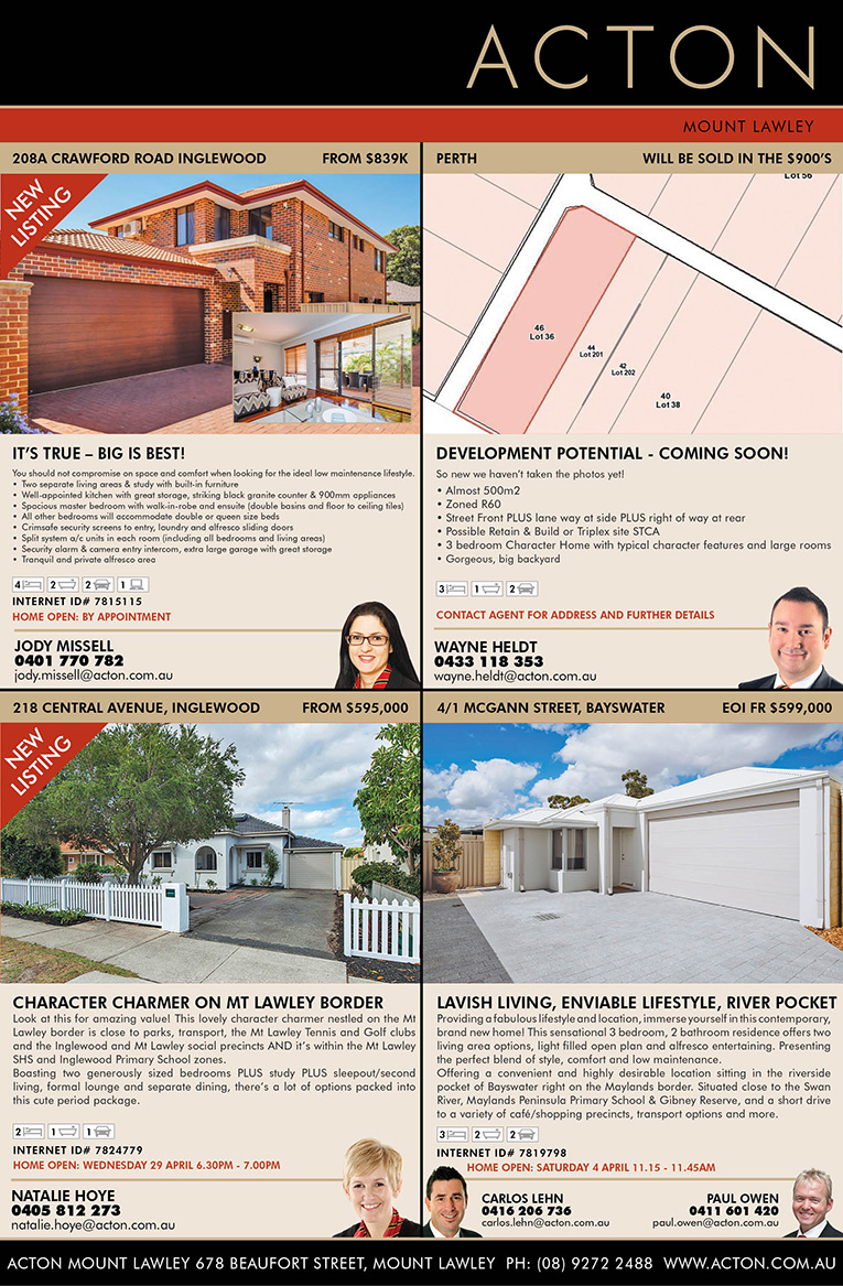 ADVERTISEMENT: See all the latest properties for sale from Acton Mount Lawley below.