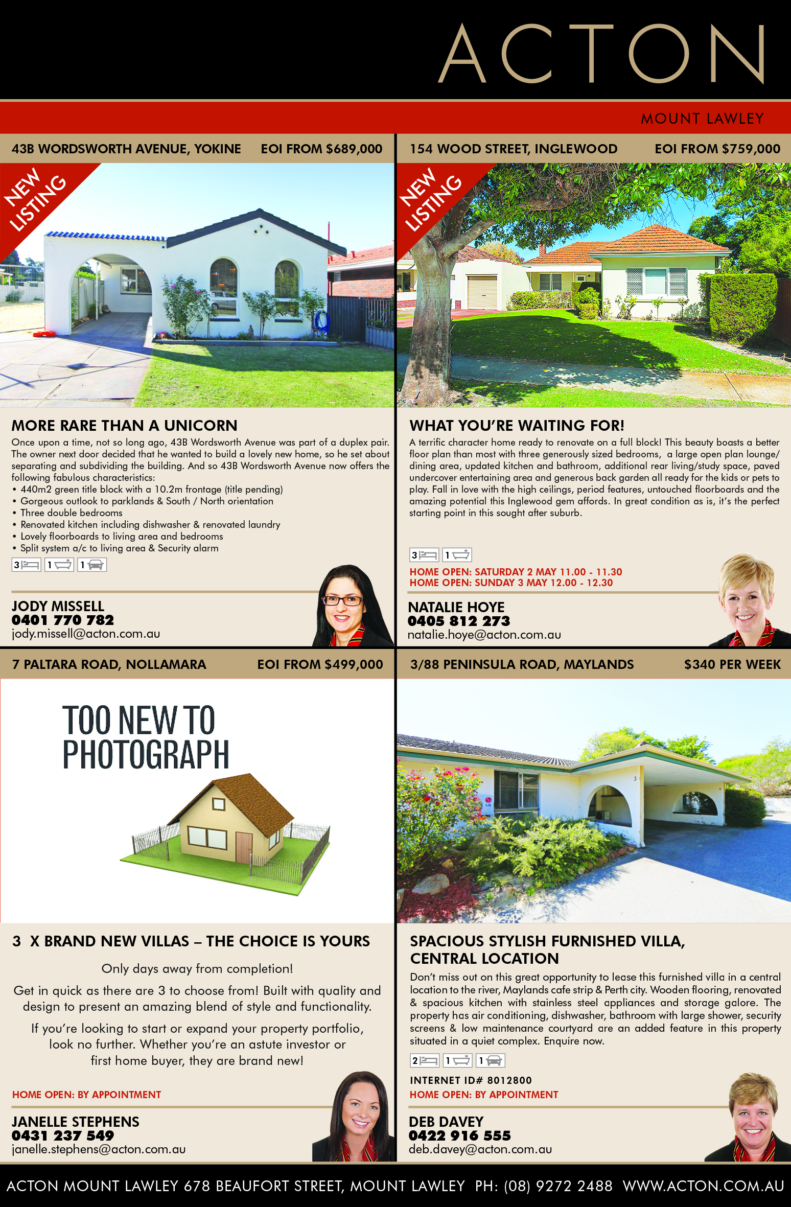 ADVERTISEMENT: See all the latest properties for sale from Acton Mount Lawley below.