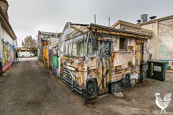 Voice photographer Matthew Dwyer snapped this pic of a curiously 3D-seeming bus in the alley behind La Cholita. The perspective mural is the work of local artist Drew Straker, who’s been drawing on walls for about 15 years.