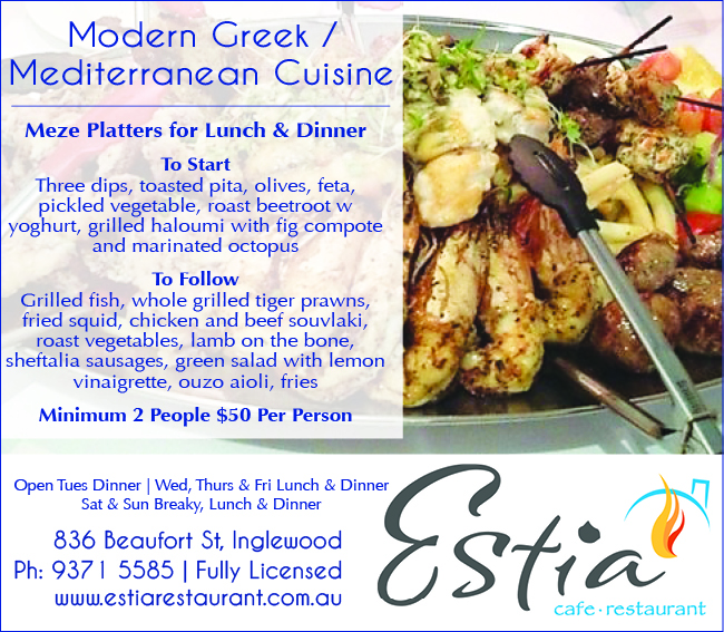 I opted for the vegie tart ($9.95 with salad). The cheeky chimps at Food Monkey arrange a vegetable mix on a puff pastry bed, voila—a “tart” (a quick and easy dish to serve). The pastry was tasty and the topping terrific, a bit like a bruschetta with tomato, basil and fetta with a balsamic vinegar glaze.