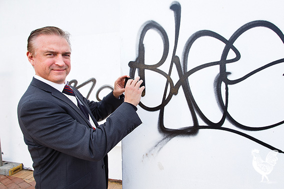 The central ward councillor says residents often spot graffiti and potholes but by the time they get back home they’ve forgotten about it, or can’t be bothered contacting the council by email or phone.