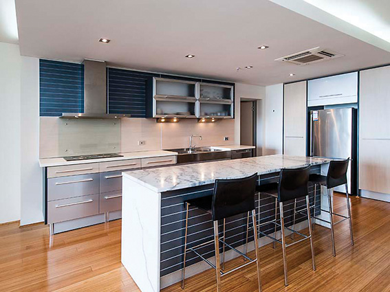 Master-chefs eat your heart out, the huge kitchen, with its sweeping marble island bench, the latest European appliances, plentiful silver cupboards and drawers, clever down-lighting, and two huge pantries, is a dream come true.