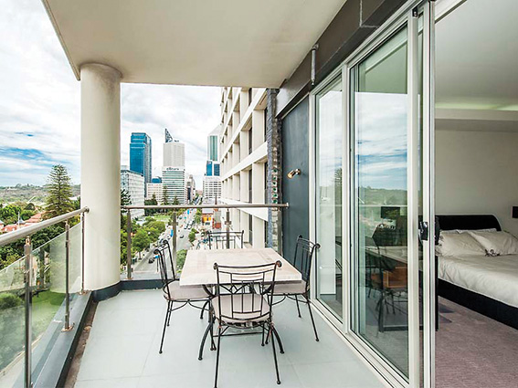 Or look to the right from the huge balcony and the gardens backdrop the scurrying of traffic on St Georges Terrace, the proliferation of city skyscrapers, and the cranes at Elizabeth Quay.
