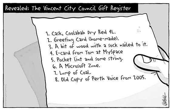 Under Vincent’s rules councillors must declare any gift valued over $50 (and refuse any above $300). Currently, anyone keen for a nosy must navigate the upstairs inner citadel at council HQ. Few bother with the rigmarole.