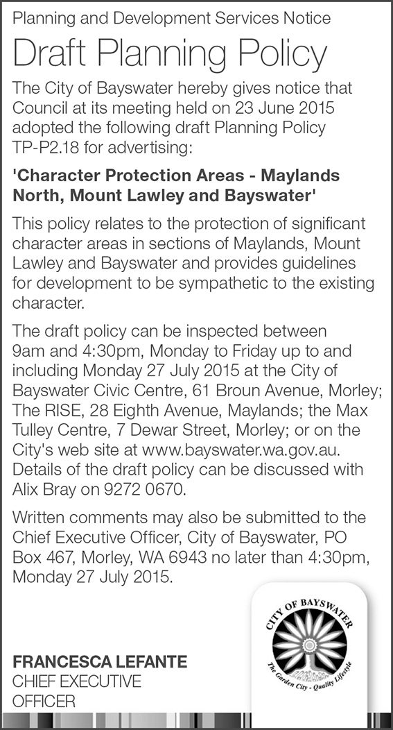 Mr Maller, a critic of Mr Sutherland MLA, might do well to avail himself of the report by calling his electoral office, or that of Eleni Evangel if he really wants to get himself up to speed on the facts. In the meantime the businesses, residents and ratepayers of the East Perth precinct await the City of Perth’s action in respect of this report.
