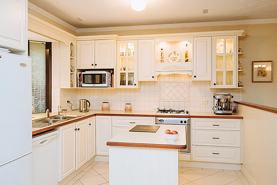 It’s been modernised to meet today’s chef’s high standards, with oodles of bench space and a plentitude of off-white cupboards and soft-close drawers.