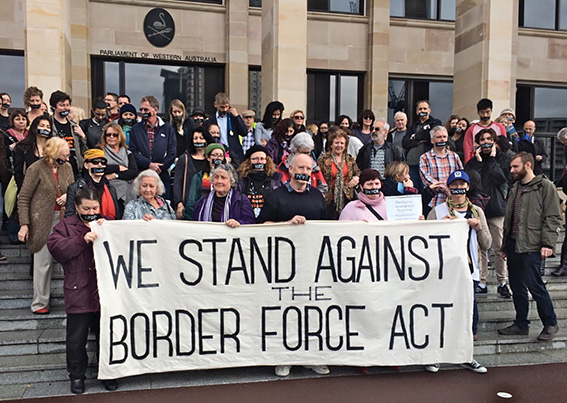 Bayswater council candidate Sally Palmer sent the Voice this photo of last Saturday’s protest on state parliament steps. About 300 people were ironically silent while protesting a new law—the Australian Border Force Act 2015, which came into force in May. The legislation compels medics and other professionals working in immigration detention centres to remain tight-lipped on mistreatment of asylum seekers they witness.