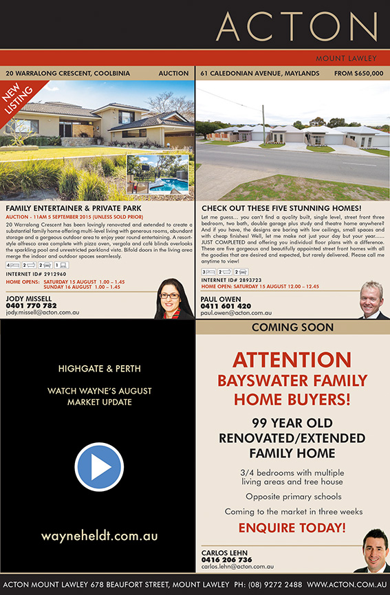 ADVERTISEMENT: Looking for a new home? See all the latest properties for sale as seen in your Perth Voice.
