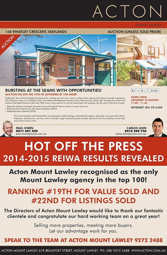 ADVERTISEMENT: Looking for a new home? See all the latest properties for sale as seen in your Perth Voice.