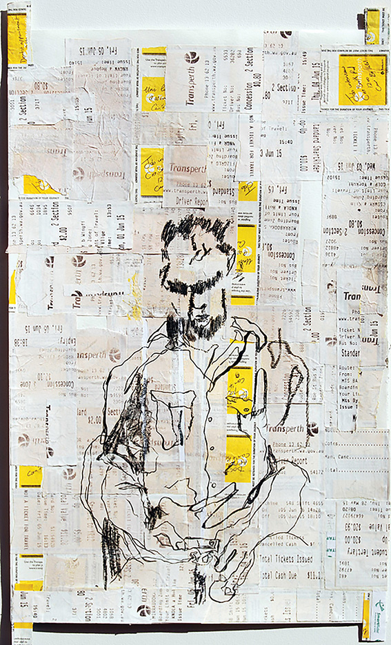 PERTH artist Ben Mitchell has taken people watching to a whole new level with Stainspotting, a series of artworks of unsuspecting train commuters that he draws on used tickets.