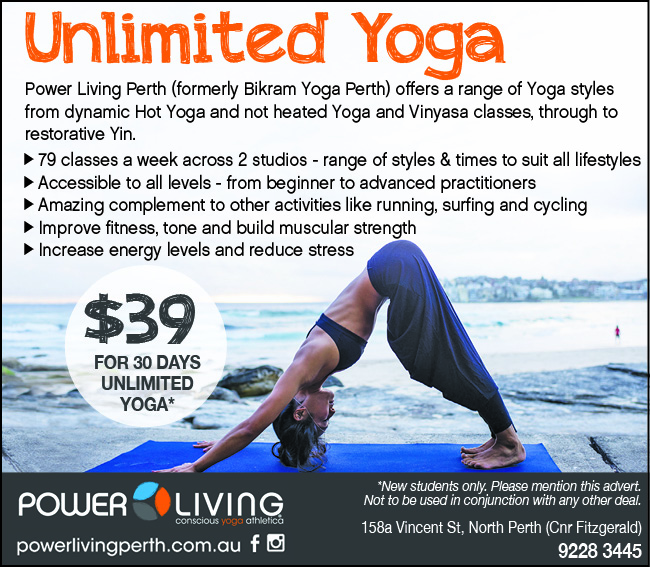 Offering Hot Yoga, Vinyasa and Yin Yoga, it’s the combination of the three styles that brings the best results and keeps the body healthy and firing on all cylinders. For new students, Power Living Perth offers an Intro Pass for $39 for 30 days unlimited yoga.