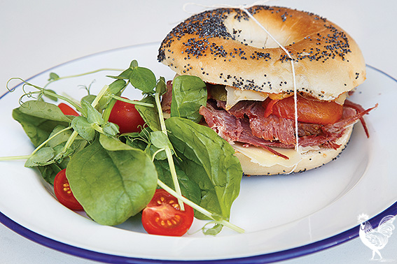 Bagels are chewy, doughy bread rolls boiled and then baked. They’re believed to have originated in Poland in the 17th century. There are four to choose from — corned beef, smoked salmon, bacon steak or roast pumpkin, and for $10 each with a side salad that’s great value.