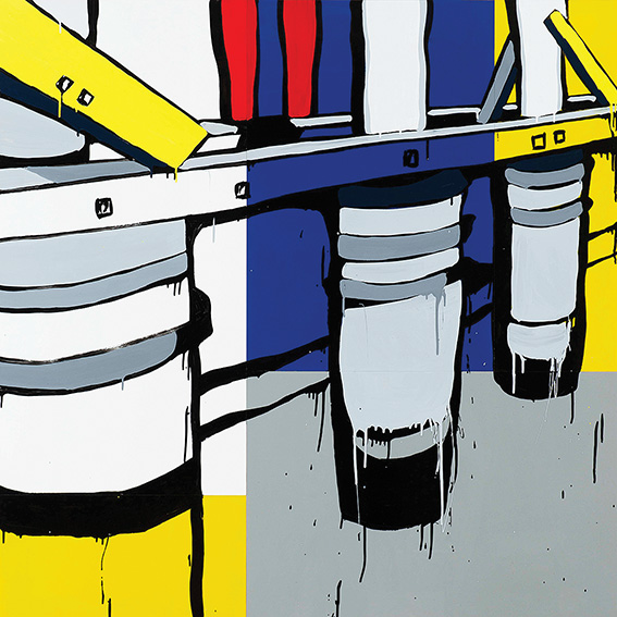 Bright colours and bold strokes imbue his industrial images with vibrancy, in part influenced by the pop-art of the ‘60s. “I’m inspired by [that]. The colours are primary,” says Knight.