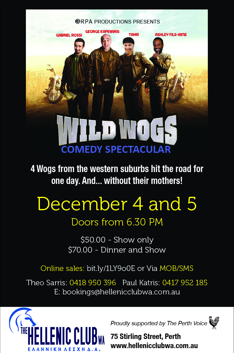 Wild Wogs is on at the Hellenic Club of WA, Stirling St, Perth, December 4 and 5.