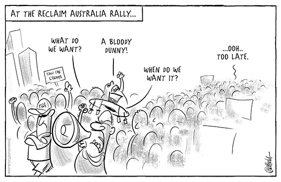 The rally had been to protest issues like sharia law, the sale of land, and the proliferation of 457 visas with no skill tests.