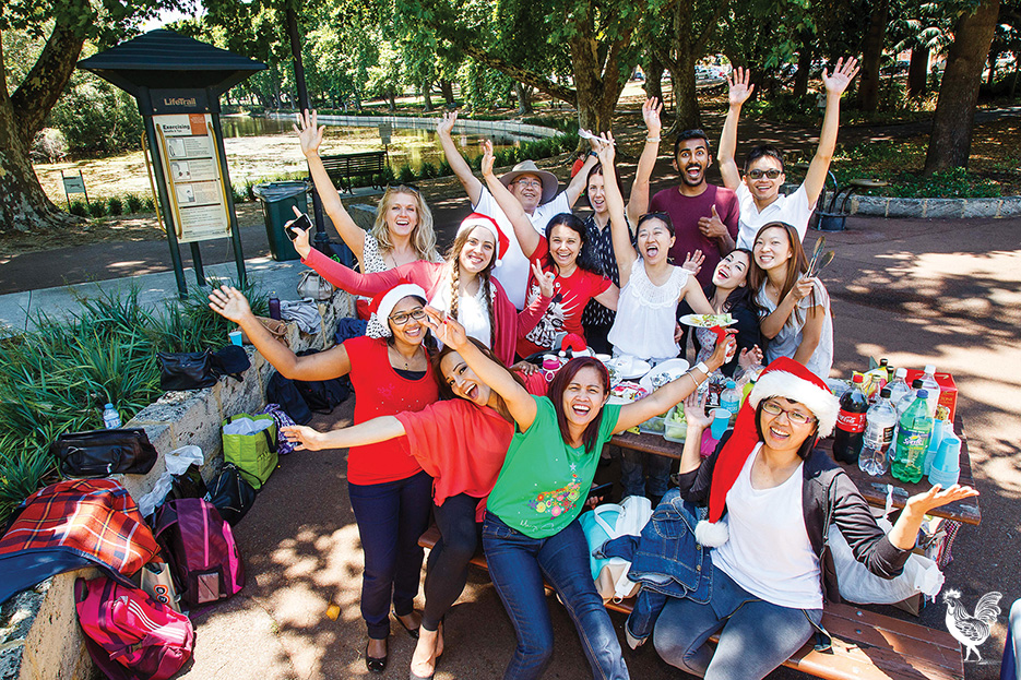 VOICE photographer Matthew Dwyer was out looking for some Christmas cheer when he came across the students and teachers from Kingston International College celebrating an Aussie picnic Christmas party in Hyde Park. They tried to share their food with the affable Mr Dwyer but, as a hobbit fond of too many breakfasts, he politely declined.