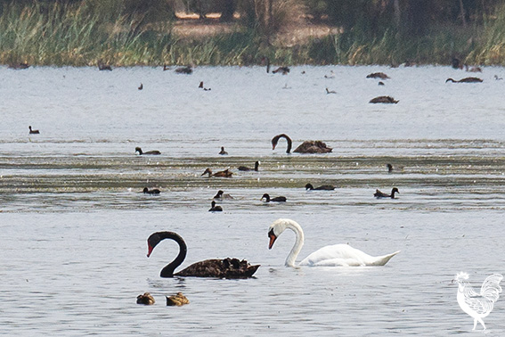 BLACK swans at Lake Monger have accepted a refugee white swan into their midst.