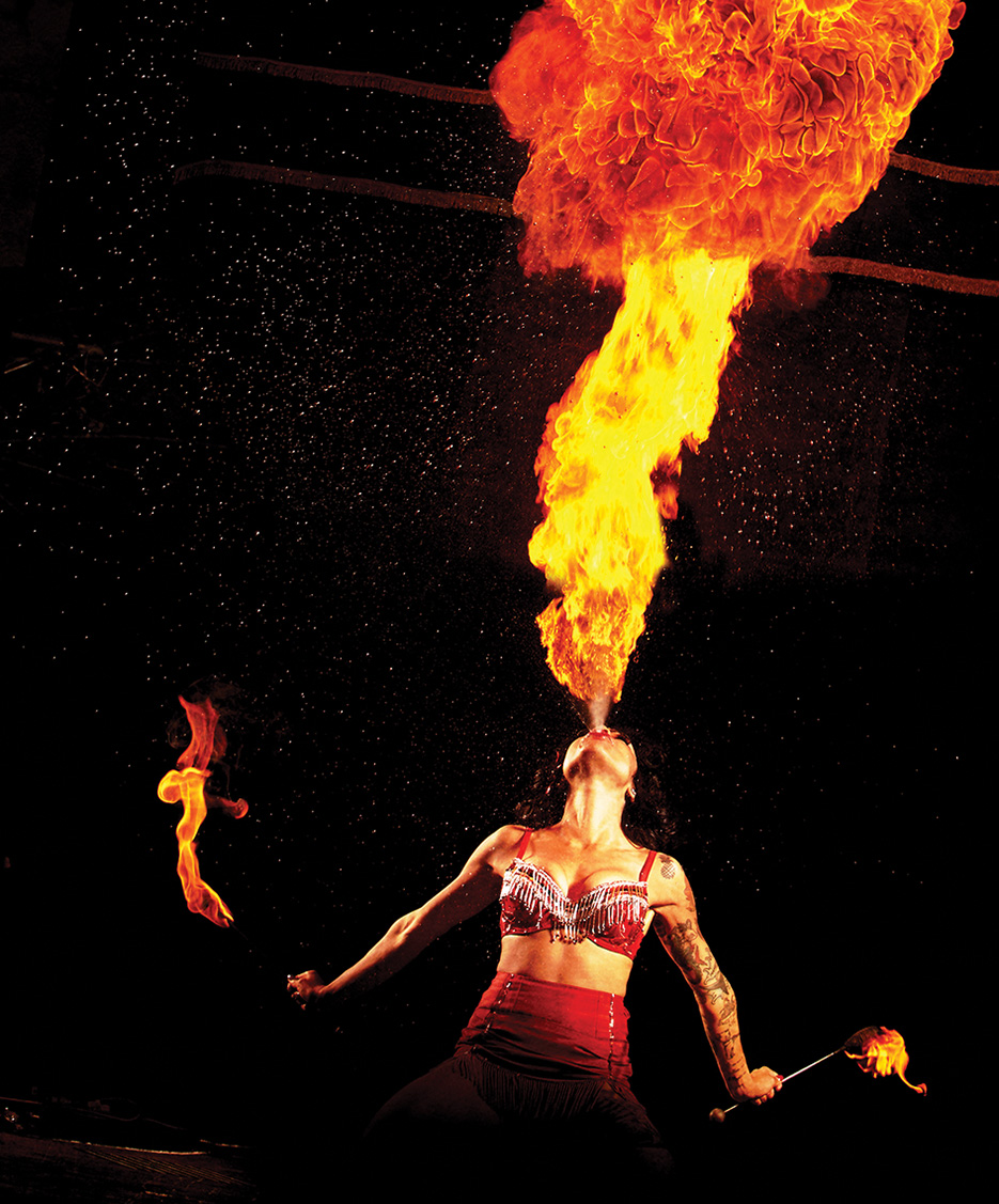 If Denis’s feet were divine, human flame-thrower Heather Holiday produced enough heat from the stage to make me wonder whether her act was a precursor to the Gates of Hell opening below our feet.