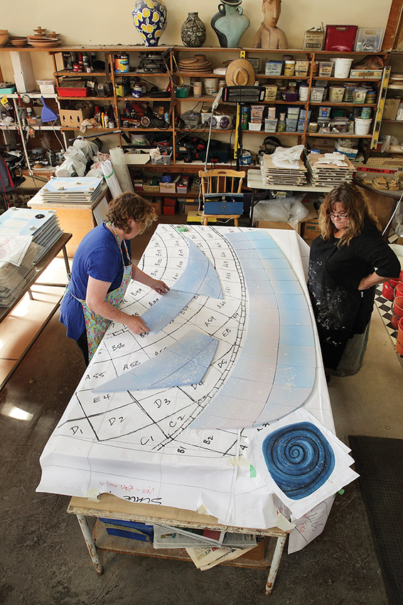 WITH a massive mural to complete in record time for Elizabeth Quay’s water playground Fremantle’s J-Shed artists Jenny Dawson and Sandra Hill put the word out to their ceramic artist mates for help.