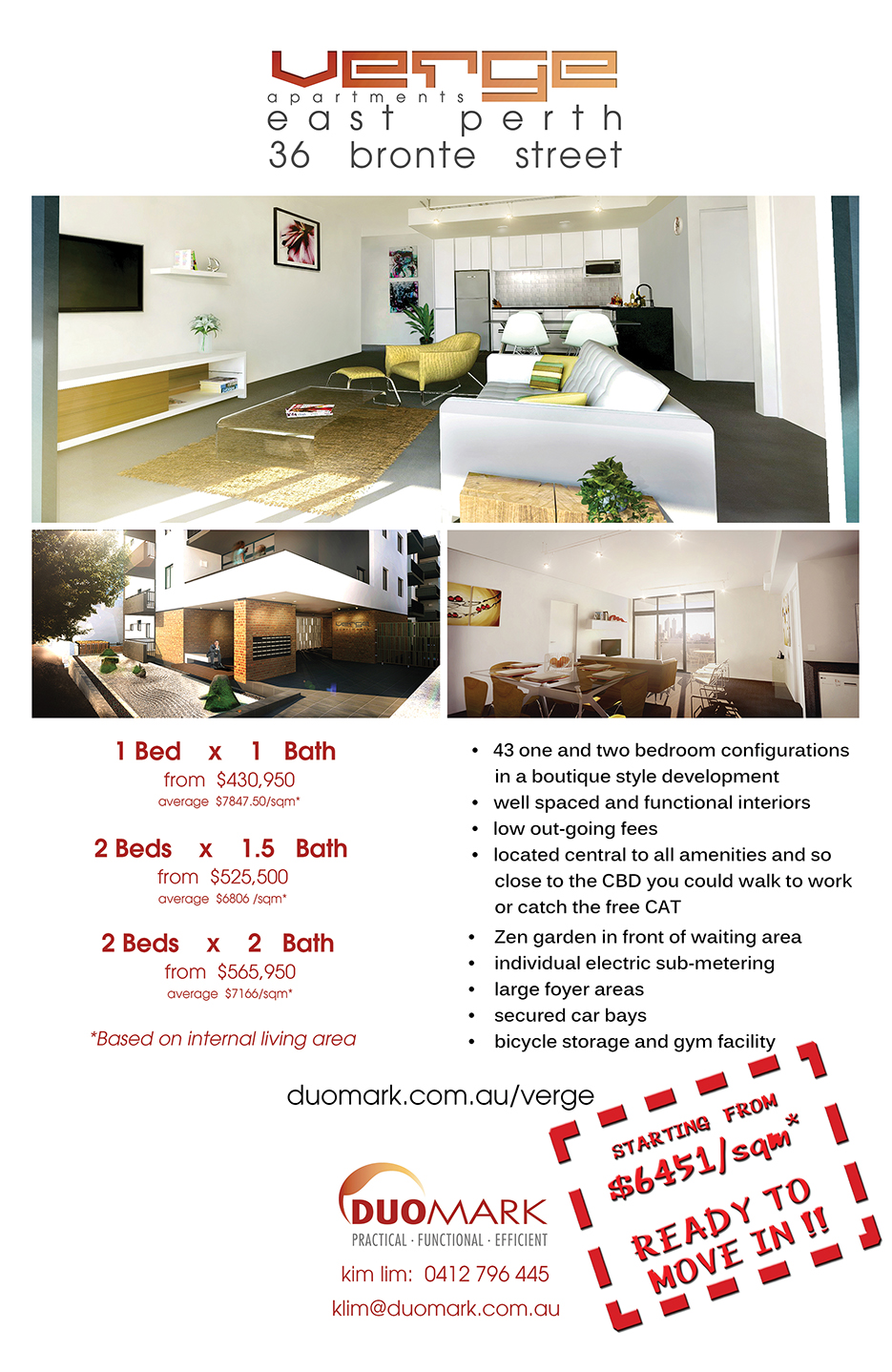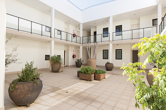 EXPECTING a hotel-style corridor as I stepped out of the lift at this apartment complex in Newcastle Street, Perth, it was with delight I instead found a sweeping courtyard open to the skies, with huge pots of olive trees, lemongrass and herbs.