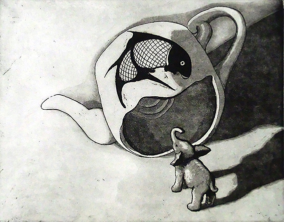 The works include deceptively simple paintings by Teresa Pirovich, detailed drawings and paintings by Tamika Dillon and Liam Murphy and a selection of paintings and brightly hand-coloured etchings by Herman Isaac and Jane Mitchell.