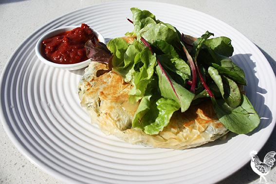 Crisp, delicate filo pastry encased a tasty mix of spinach and ricotta, with plenty of flavour and none of the bitterness some spinach pies have. And the rich tomatoey chutney was a deliciously sharp accompaniment.