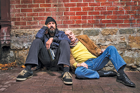Homeless, he lives in an alley with an Indigenous man, Tank (Maitland Schnaars), sharing a camaraderie and a love of music and witty banter.