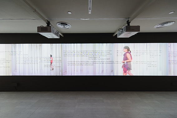 In Swimming, a 15-metre wide projection follows Ngui swimming laps in a pool, a life-sized image that will fill the main gallery.