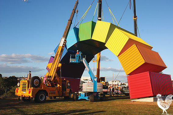 “It was always going to be a challenge to connect nine sea containers and make them hover in an arch which at its apex is nine metres above the ground. The result is 66 tonnes of wow,” he said.
