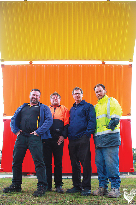 The job was so huge True Blue partnered with neighbour CME Boilermaking to weld the huge metal struts inside the containers that allowed them to be bolted together.