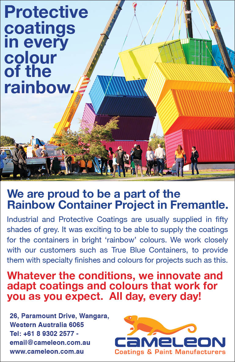 THREE huge cranes struggled as they worked in unison, daylight fading, to slot the last section of the giant rainbow arch of sea containers into place on Beach Street Reserve, just up the road from Fremantle’s old traffic bridge on Canning Highway.