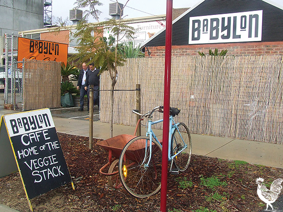 With no proper kitchen Babylon’s bill of fare is simple, mostly toasted sarnies and soup, and veggie stacks — some with bacon, and sometimes pasta.