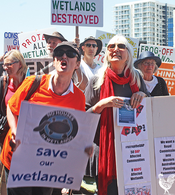 AROUND 350 protesters rallied at Parliament House this week demanding better protection of Perth’s dwindling wetlands.