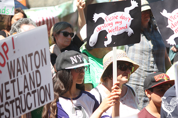 A planned housing development that saw a large chunk of privately-owned wetlands cleared in Bayswater sparked the rally, but others with concerns ranging from the Roe Highway extension through Beeliar wetlands to the Point Peron canals used the occasion to highlight their cause.