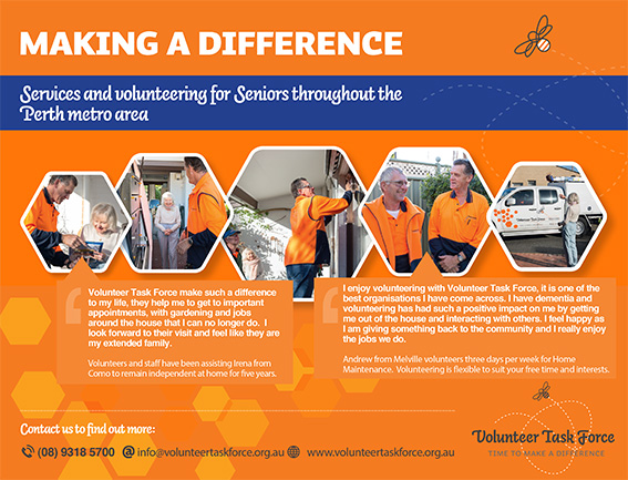 VTF offers a wide range of volunteering and services to people requiring support including gardening, shopping, companion services and community outings. VTF boasts a team of more than 100 staff and nearly 500 volunteers and helps out more than 8000 people in Perth every year.