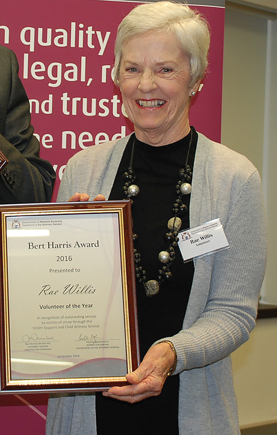 YOKINE resident Rae Willis has won the 2016 Bert Harris award for supporting victims of crime.
