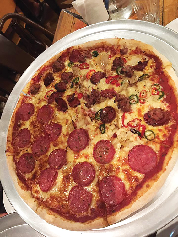 Our party shared four toppings spread across two 16-inch pizzas; Big Tony’s Pepperoni, The Baller, Swine and Pine, and Boom, Shake, Shake, Shake the ShROOM, along with a substantial side of buffalo wings and BYO refreshments.