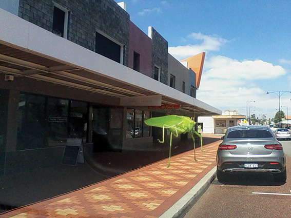 Voice reader Chris Elieff sent us this photo of what looks like a 1950s B-movie monster attacking Beaufort Street, but this gigantic-appearing insect is just a wee grasshopper on his windshield.