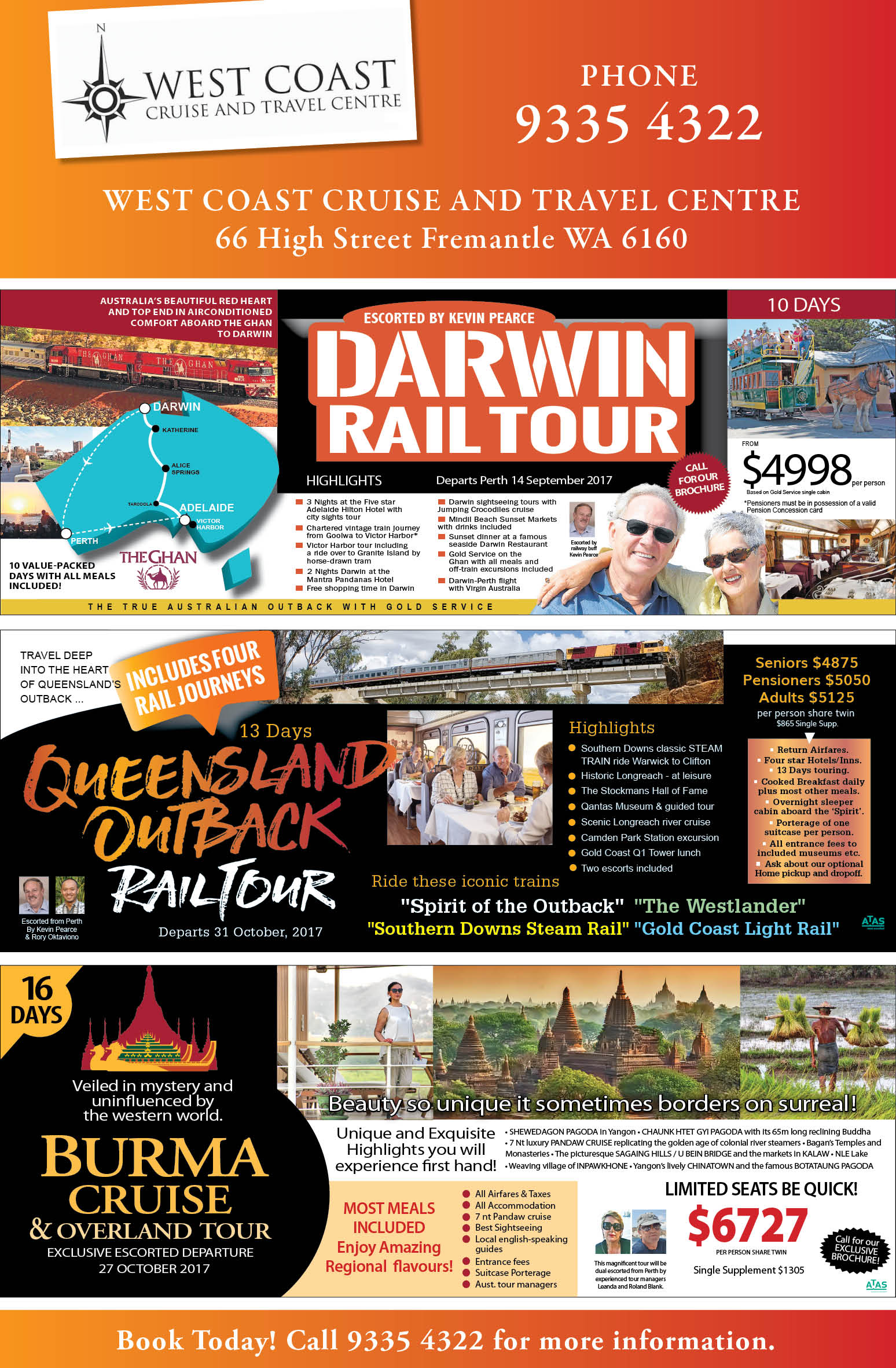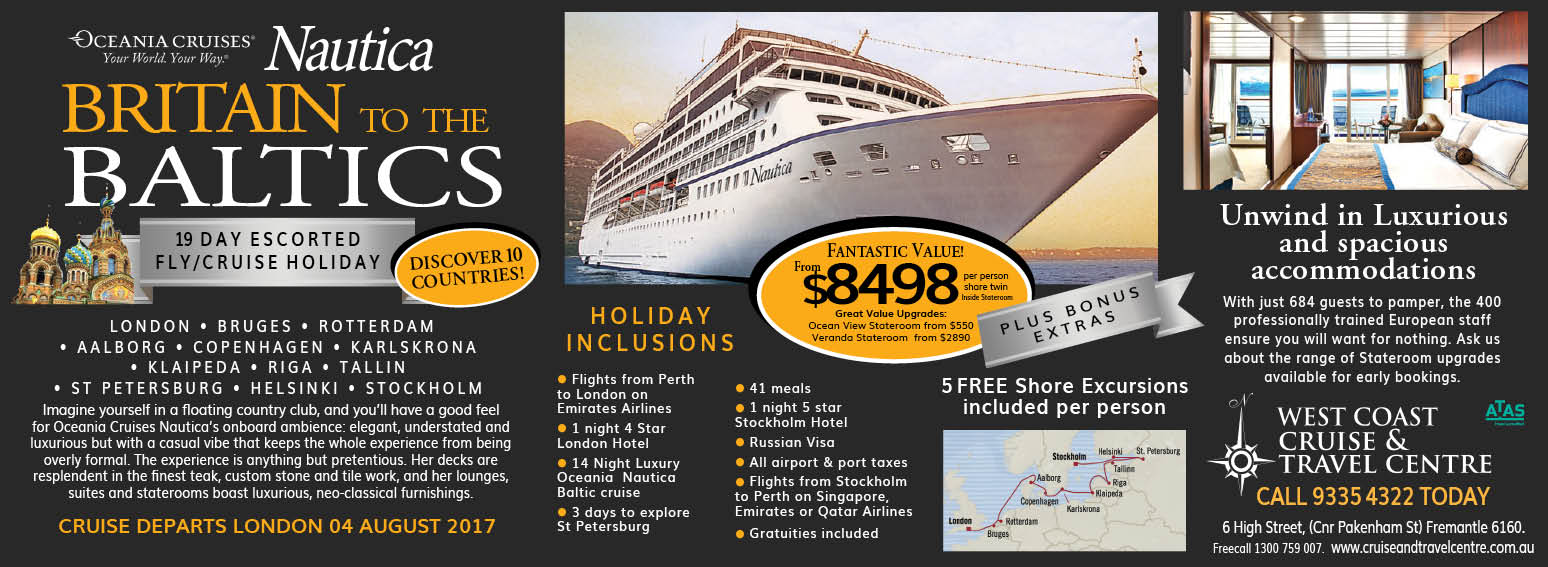 Contact West Coast Cruise & Travel Centre for further information.