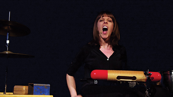 Her compositions are also known for incorporating theatrical elements such as physical gesture, design and choreography, and her new work focuses on the percussive tone of everyday objects.