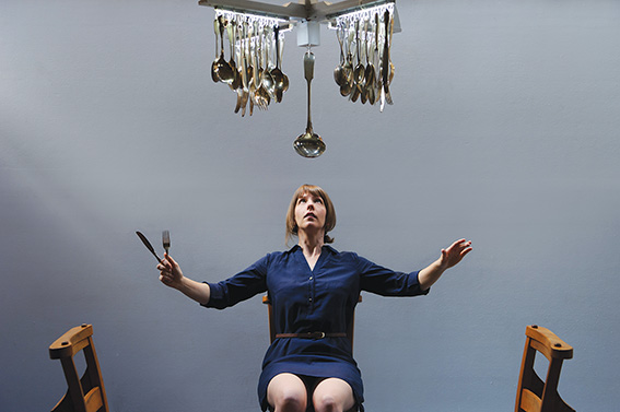 • Leah Scholes gets all John Bonham with her mum’s cutlery. Photos