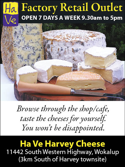The factory retail outlet is located in Wokalup, a 5 minute drive south of the picturesque town of Harvey. Open 7 days a week from 9.30am to 5pm, you can view and taste the cheeses and browse through the shop. Get out of the city and spend a day in the glorious southwest countryside. And don’t forget to call into Harvey Cheese for some tasty treats!
