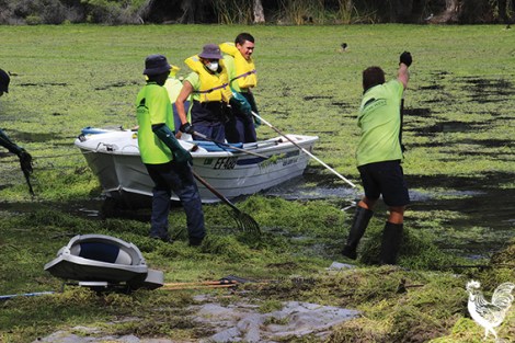 Council workers installed a filtration buffer at the putrid lake so it doesn’t spill muck into the bigger Bungana and Brearley lakes nearby, and they’ll consider dredging if necessary to remove more nutrients that cause the thick soup of algae that reduces water oxygen levels.