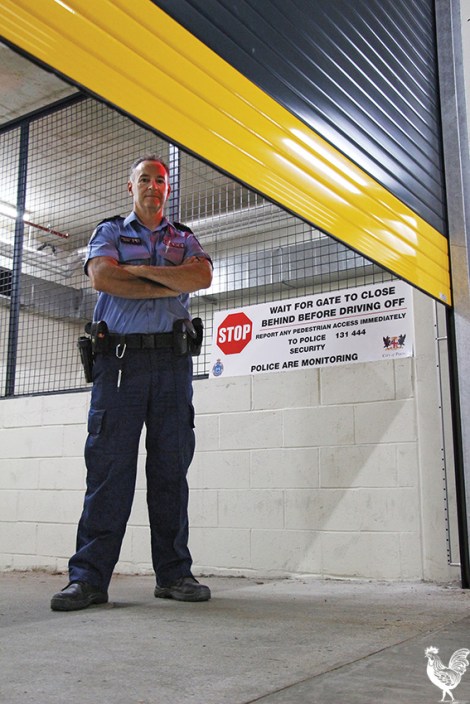Police are putting up signs at garages, urging people to wait for the gates to close before driving off, and to “report any pedestrian access immediately to police: 131 444.”