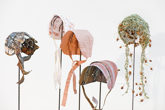 Seiver created a bonnet for each of the dead babies in Gardiner’s research, using materials that related to their fleeting existence.